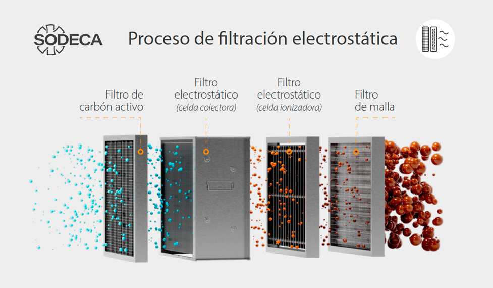 El funcionamiento se basa en un proceso de ionización: un campo eléctrico de alta tensión carga las partículas contaminantes y, posteriormente, estas quedan retenidas en una celda colectora, permitiendo que el aire expulsado sea mucho más limpio.