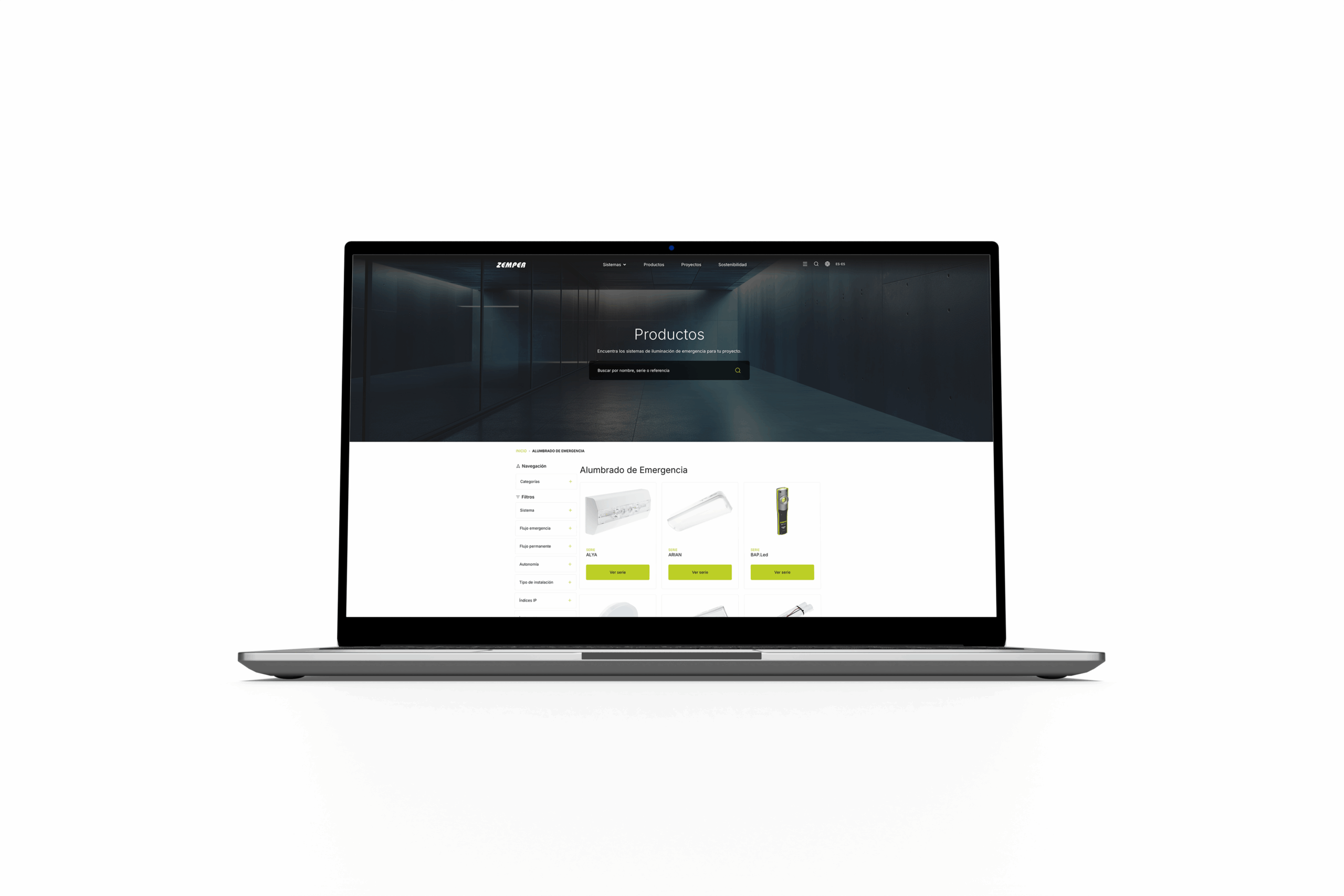 La plataforma reorganiza la navegación con un enfoque centrado en sistemas y soluciones, facilitando entender cómo se combinan las distintas propuestas de iluminación de emergencia dentro del edificio y localizar la información relevante sin perder tiempo.